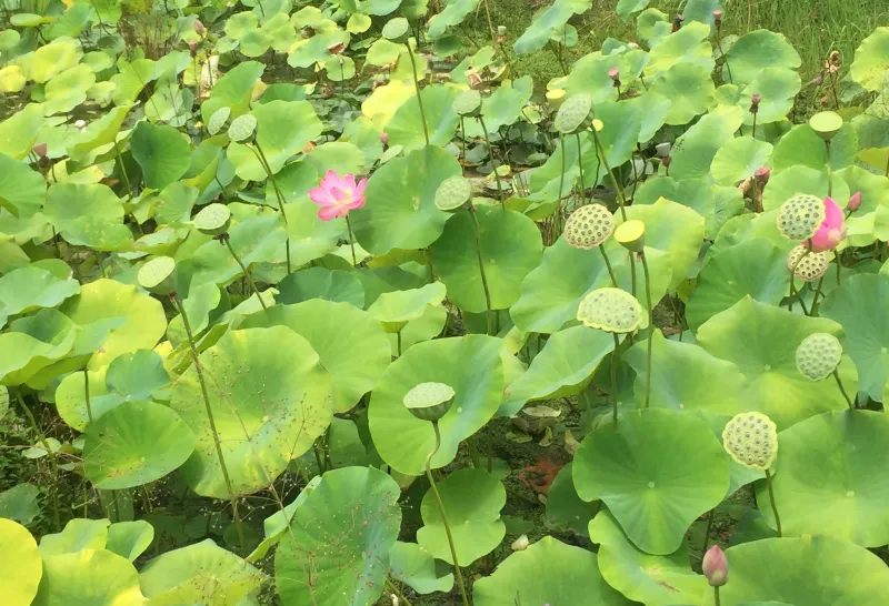 While most of us are familiar with the stunning and symbolic lotus flower and the sculptural woody seedpods, there’s a funky stage in between that is truly other worldly.