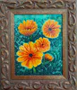These new-born nasturtiums are a resonant match for the rich reds and golds in the ornate frame.